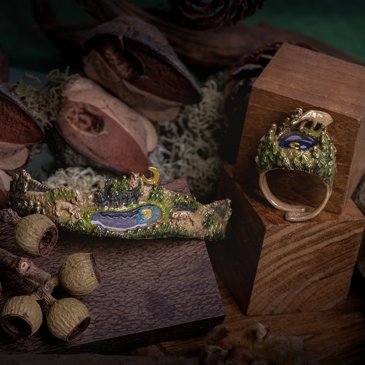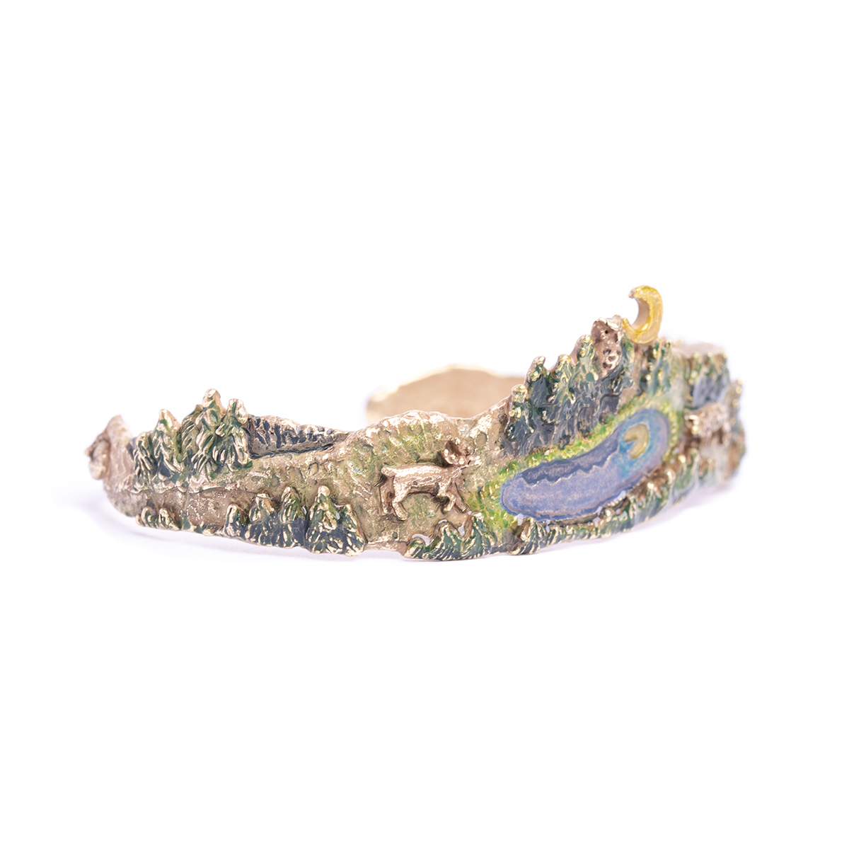 真夜中の森に佇む泉の風景を描いたブレスレット。