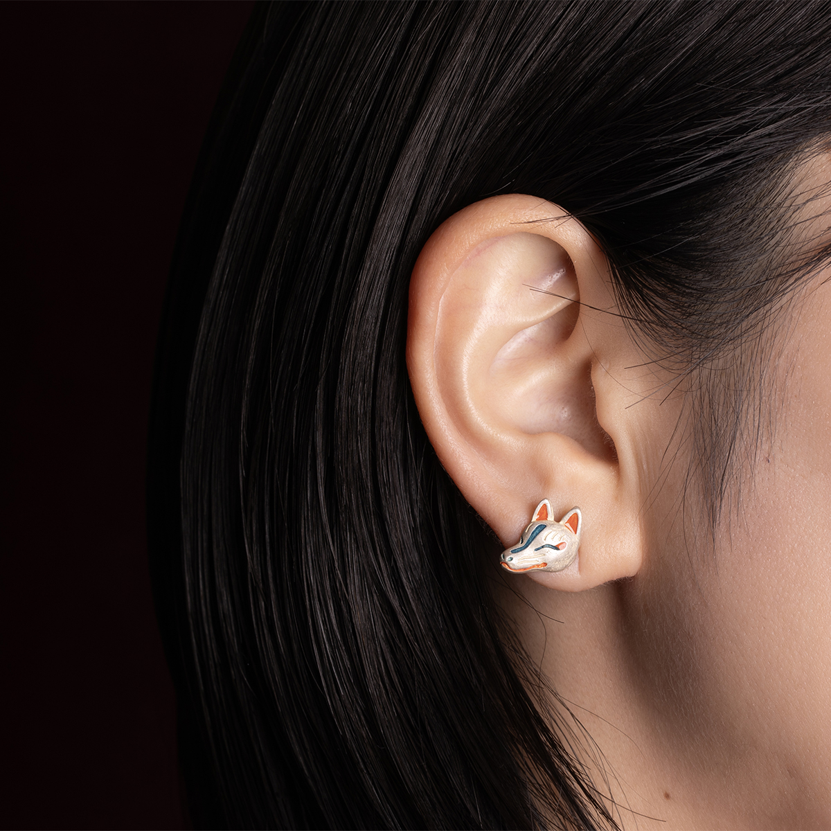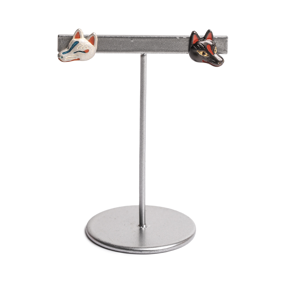 白と黒の狐面をモチーフにしたピアス。