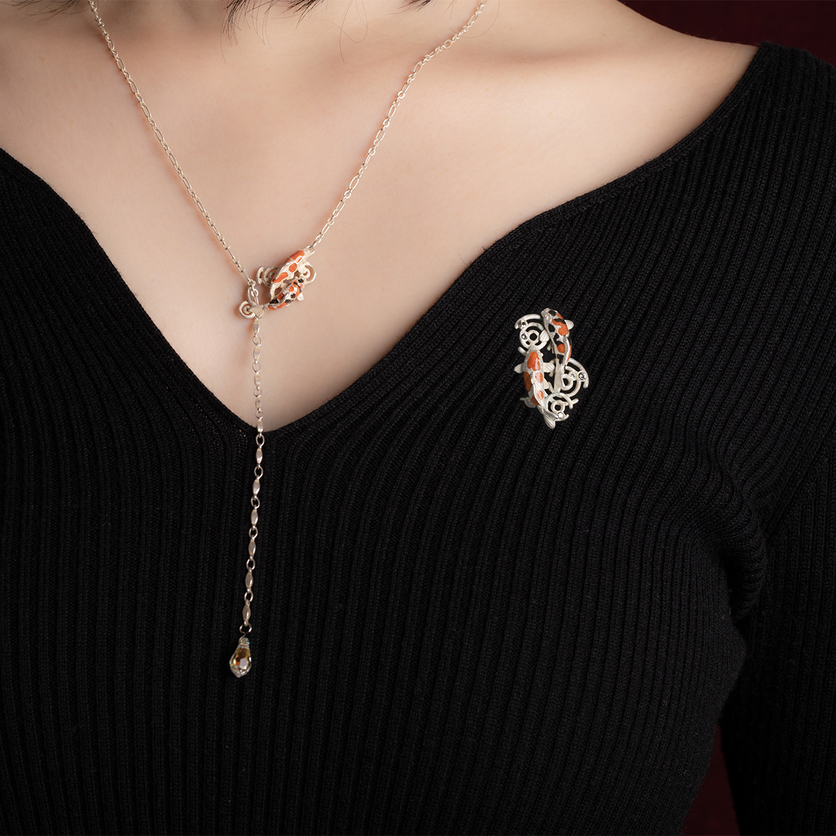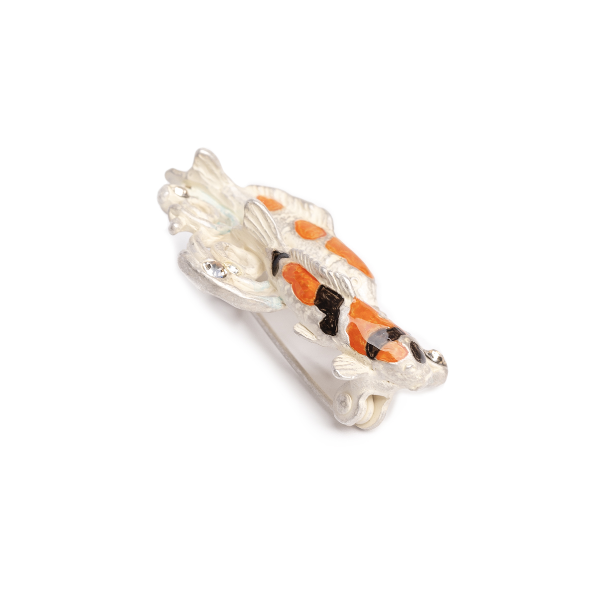 水の中を優雅に泳ぐ錦鯉がデザインされたブローチ。