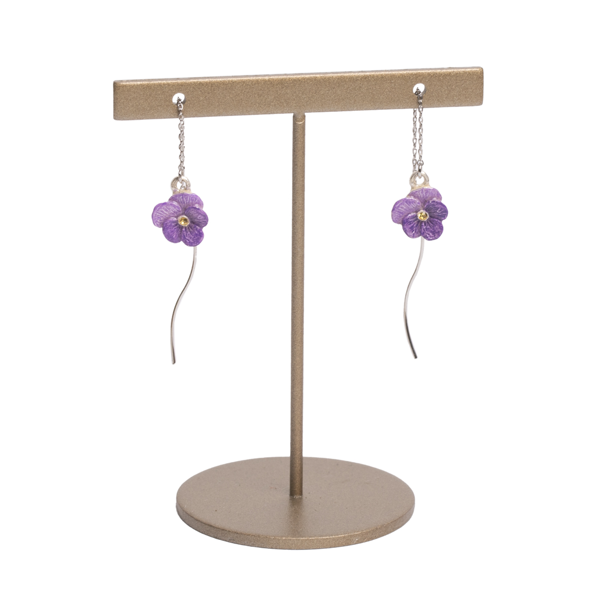 小ぶりなビオラが耳元で揺れる、アメリカンピアス。
