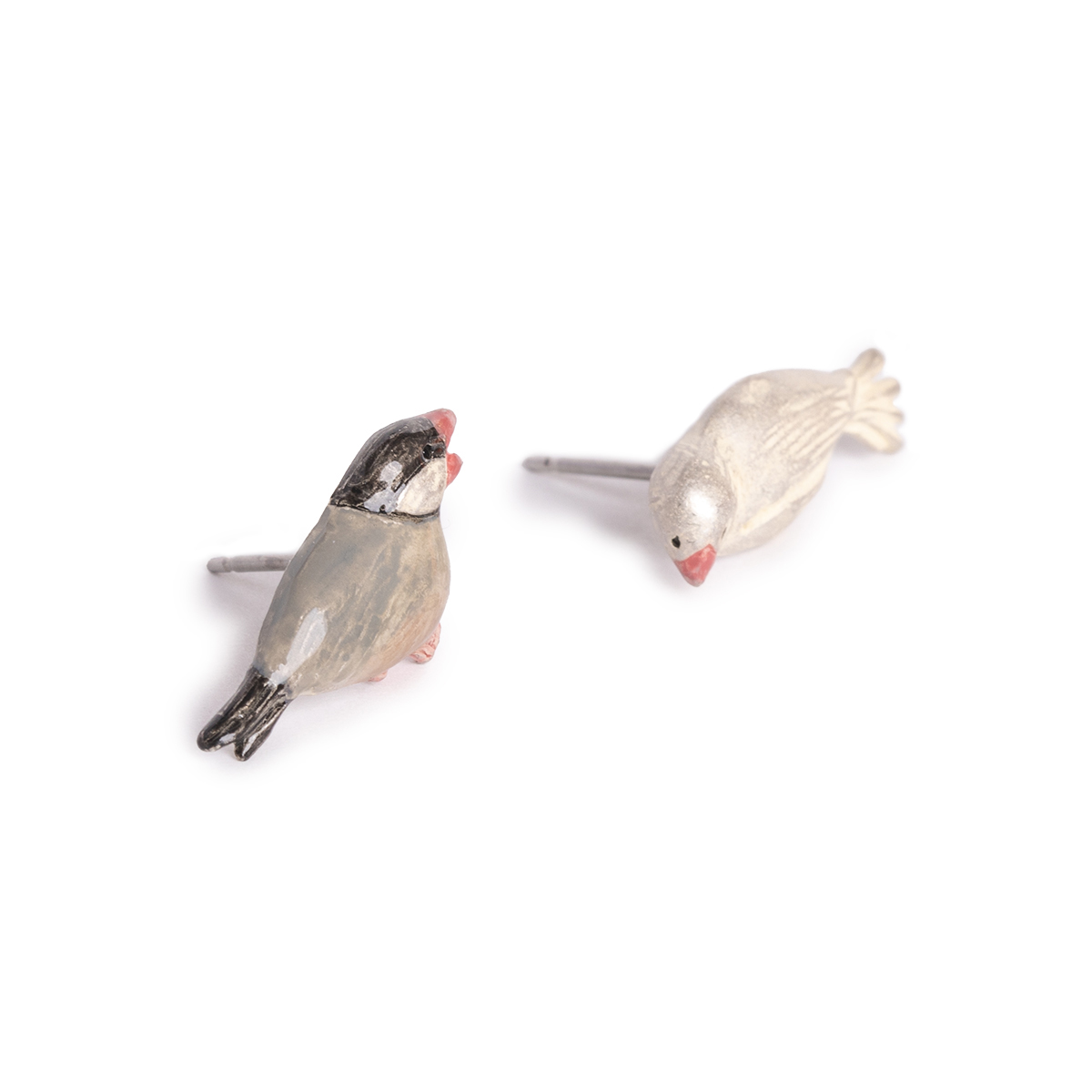 おしゃべりが大好きな2羽の文鳥をモチーフにしたピアス。
