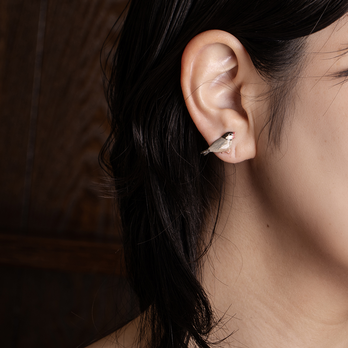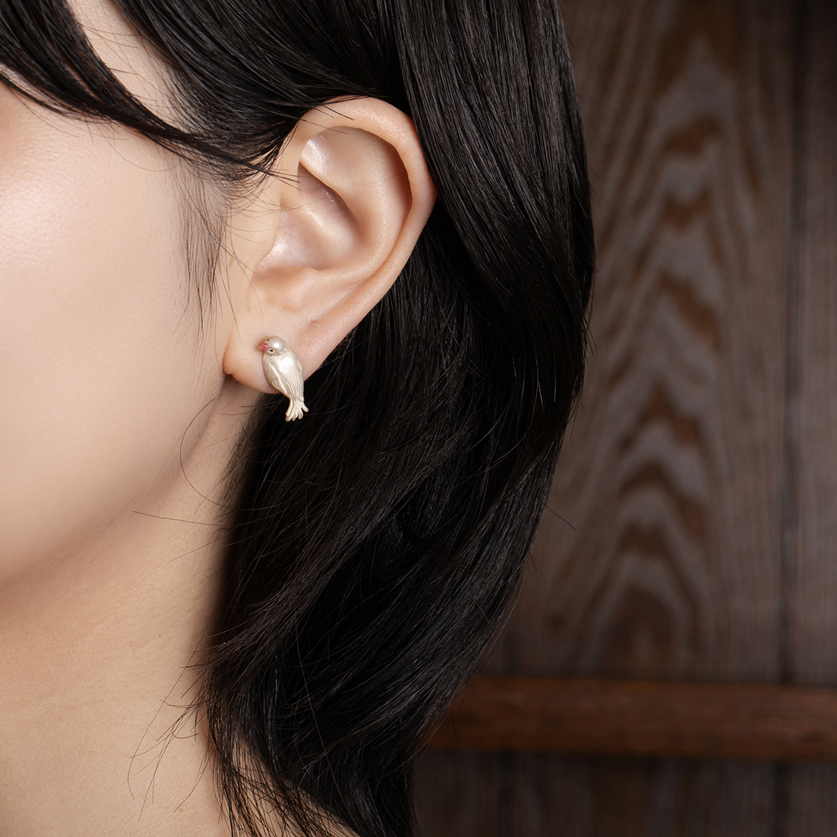 片側に2つのピアスホールがある方は、2羽を並べてつけることで、より会話しているような雰囲気を楽しめます。