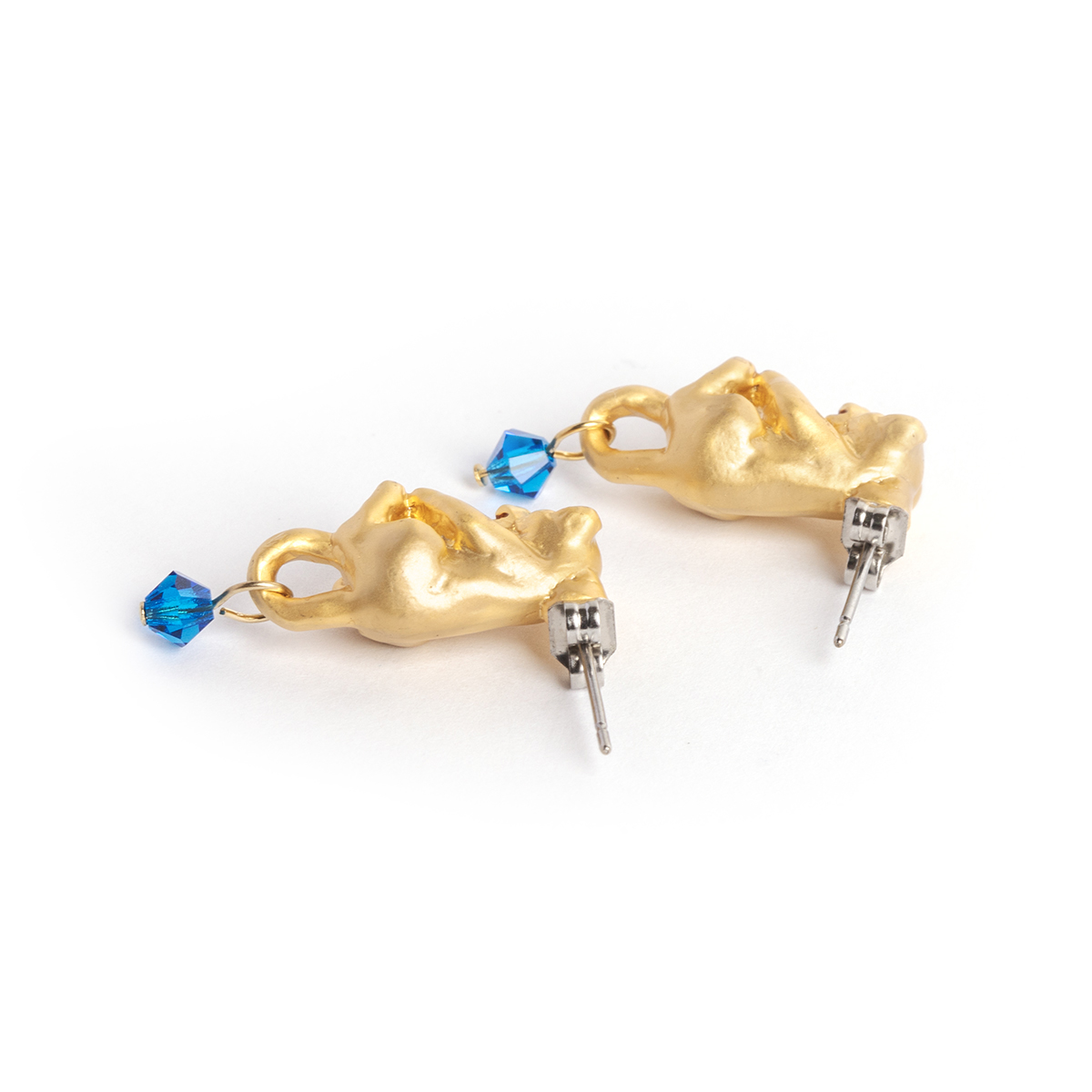 いたずらをとがめられたのか、いじけた様子でくるんと丸まったしっぽにも美しいブルーのカットガラスが揺れ、動く度にキラキラと輝きます。
