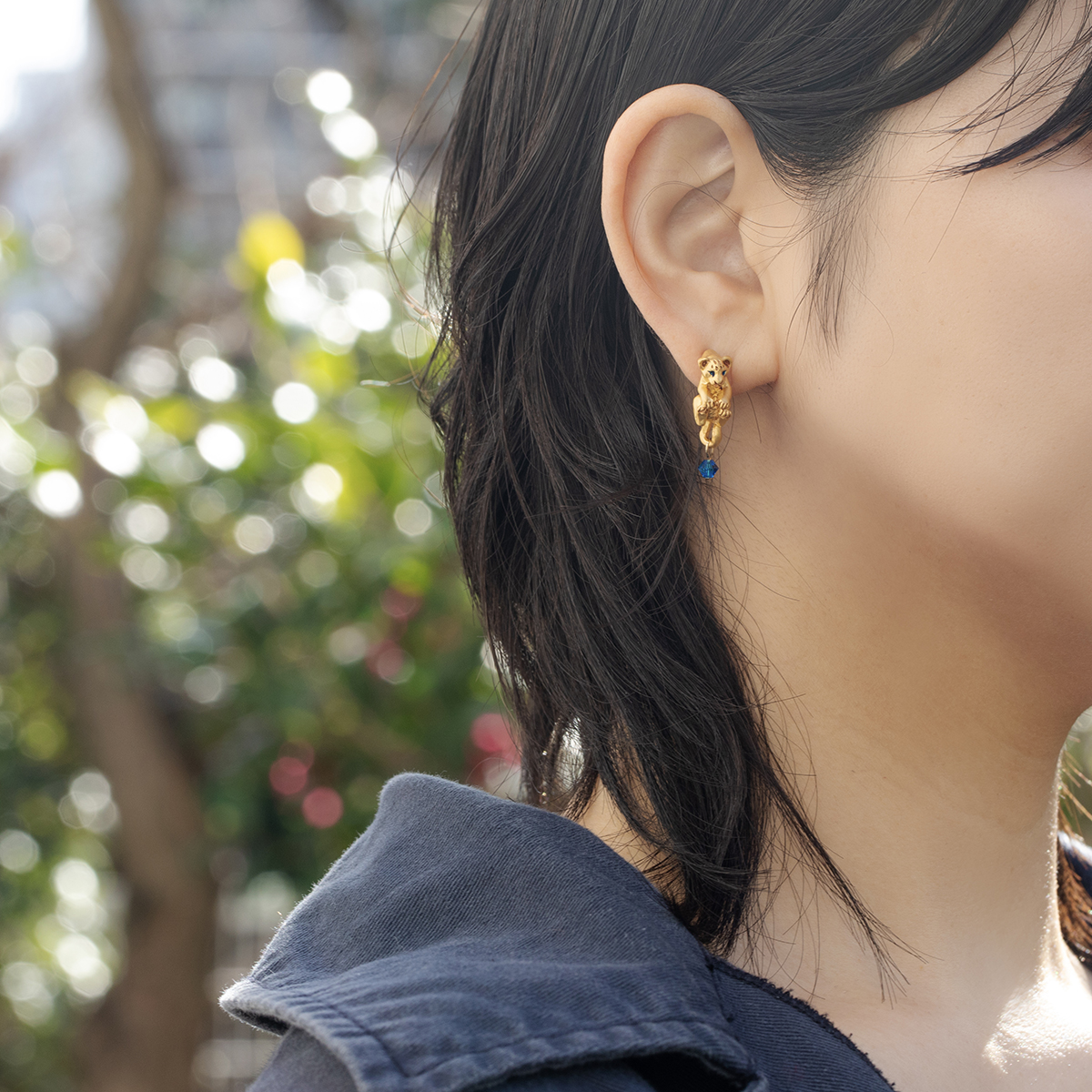 好奇心旺盛なライオンの子のピアス。