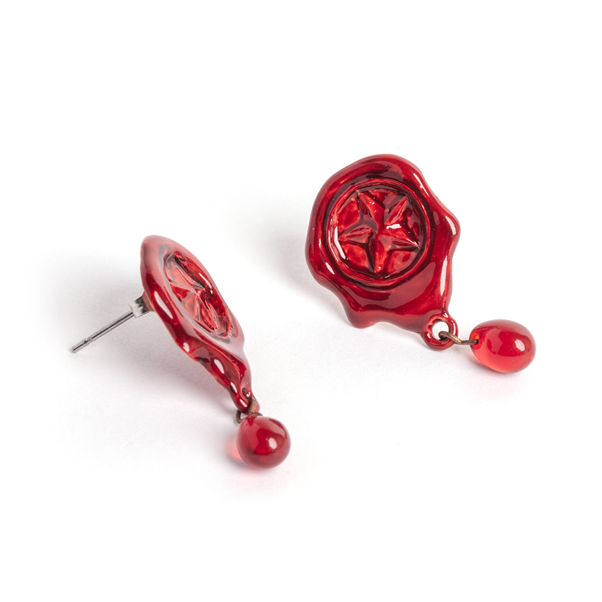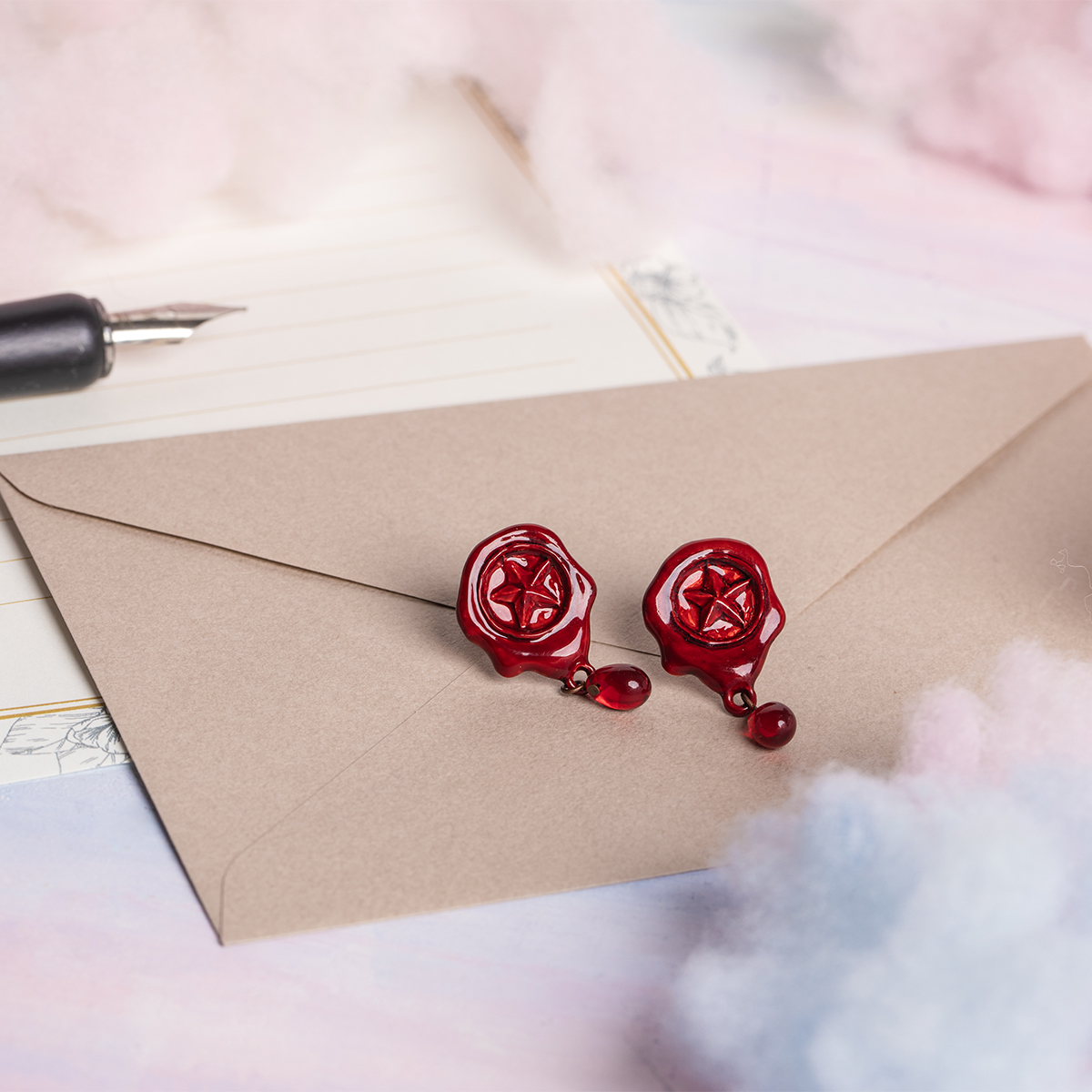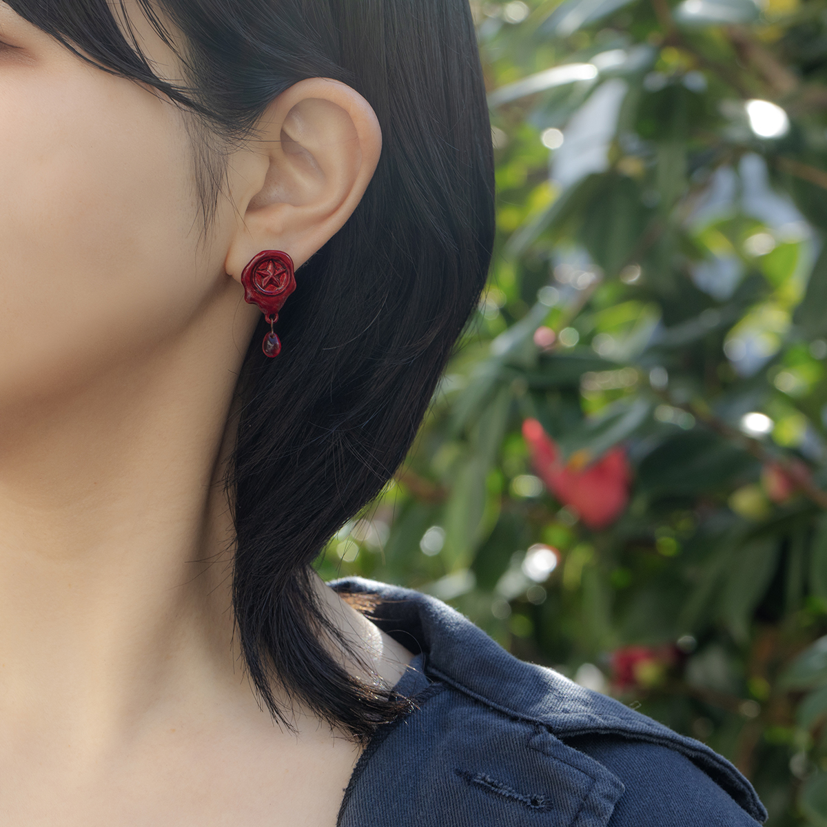真っ赤なシーリングワックスのピアス。 封筒の封をする際に使われる、とろりととろけた蜜蝋の艶感が美しいアイテムです。