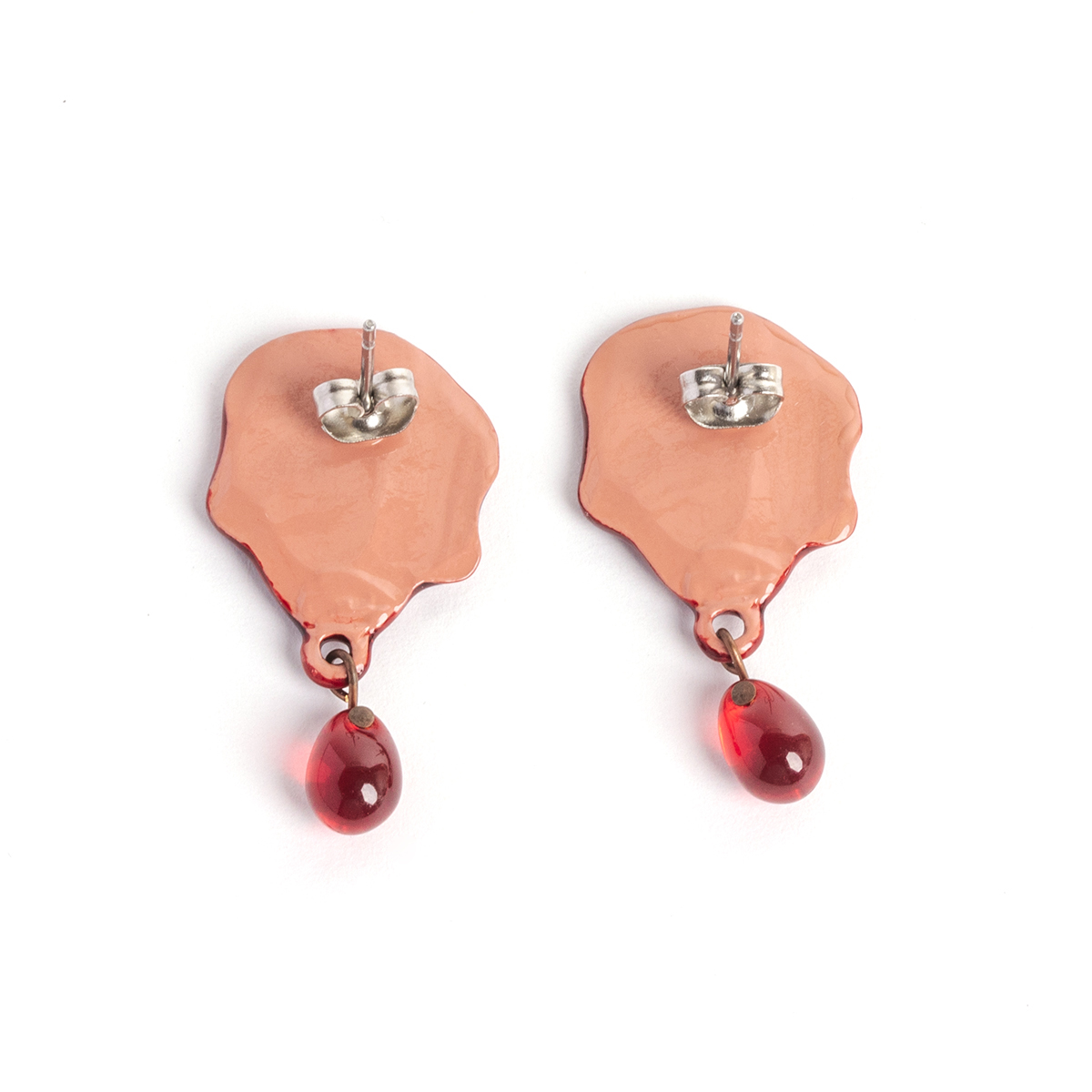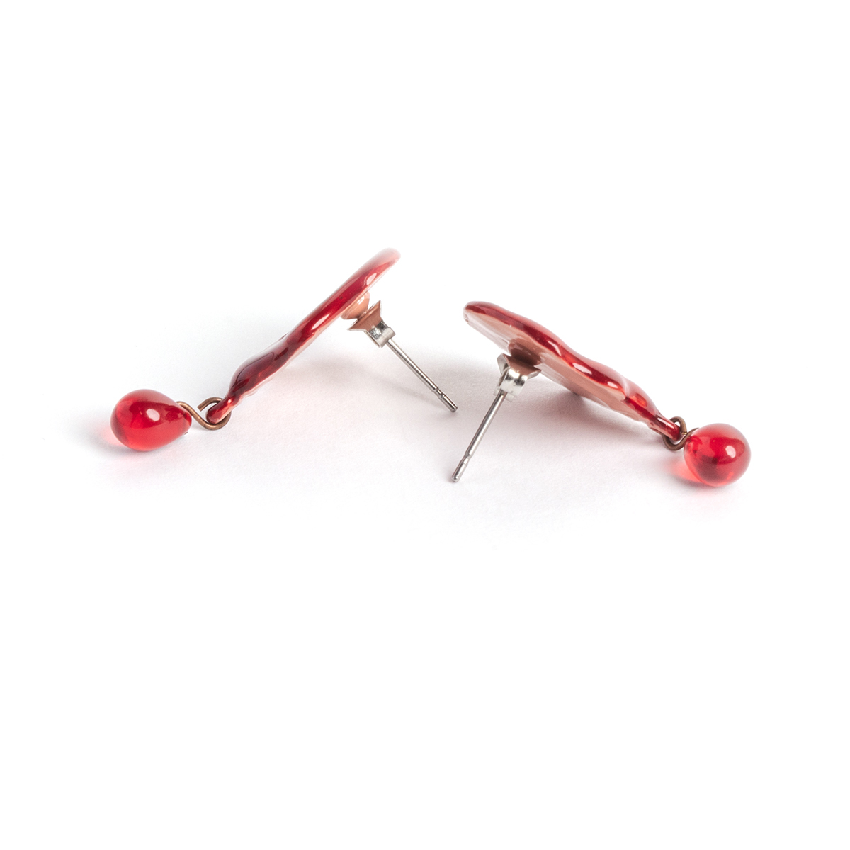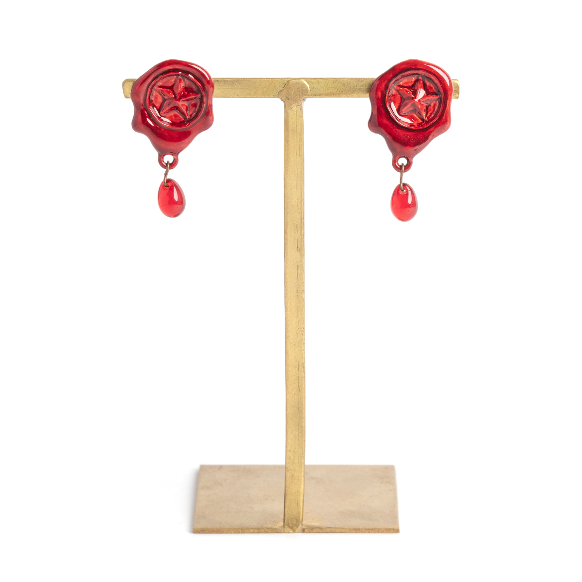 真っ赤なシーリングワックスのピアス。 封筒の封をする際に使われる、とろりととろけた蜜蝋の艶感が美しいアイテムです。