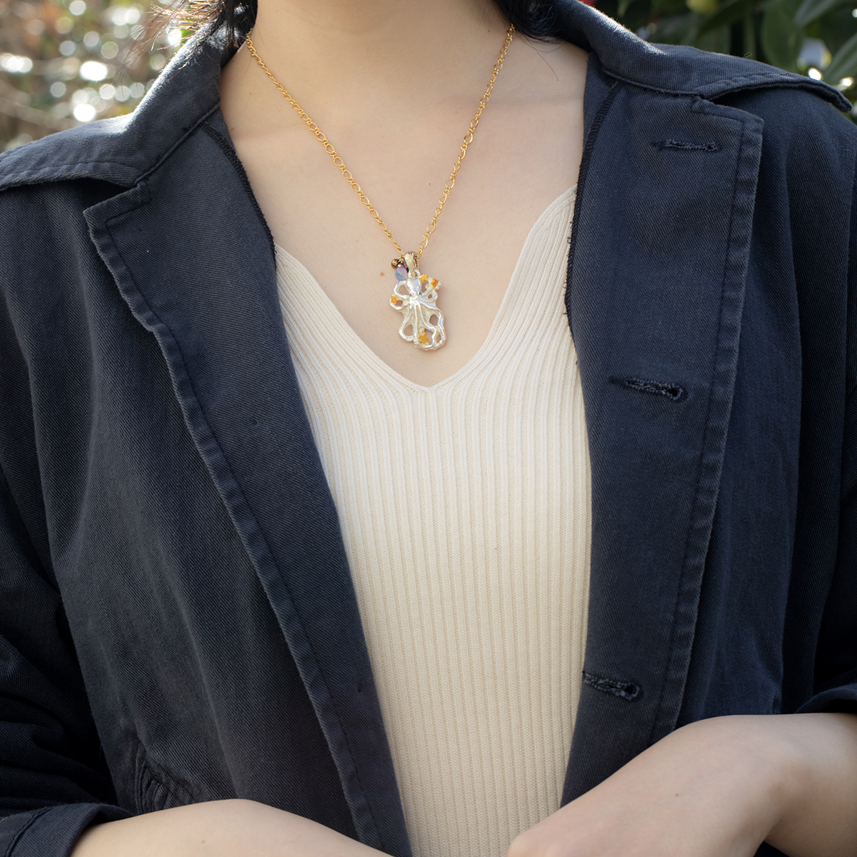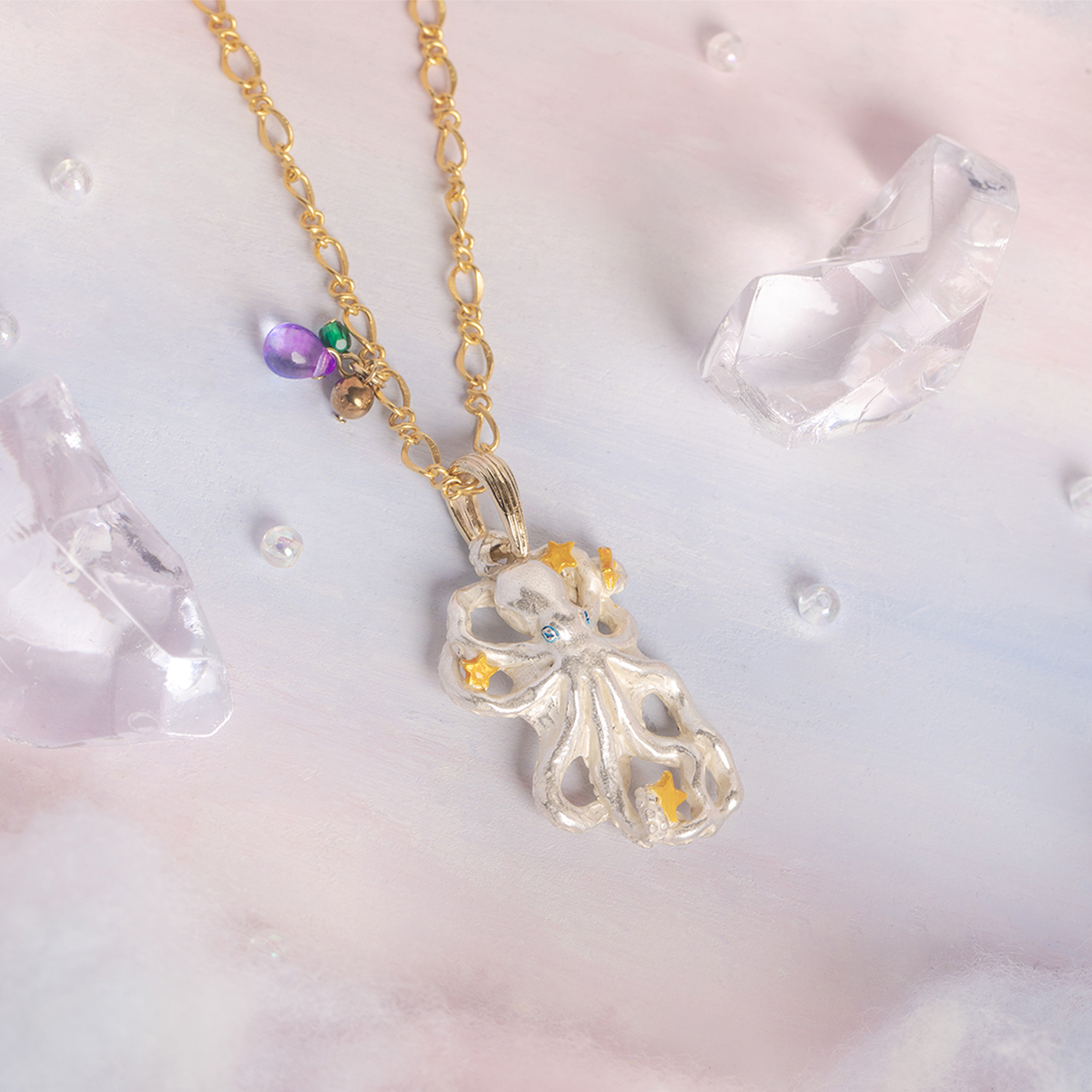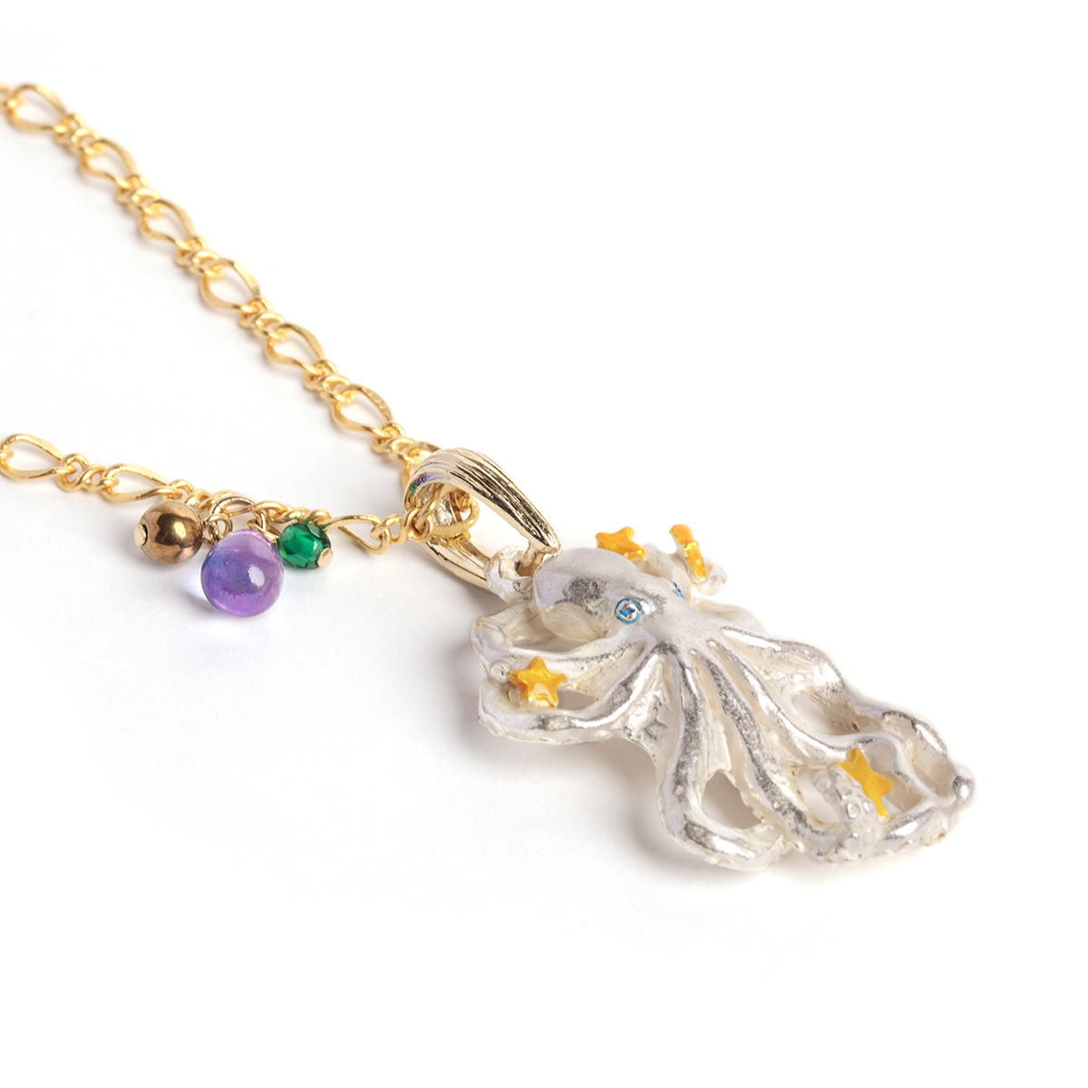 よくばりなタコのネックレス。 目についた星をすべて抱え込もうとかき集め、たくさんの星を握っている姿がユニークです。